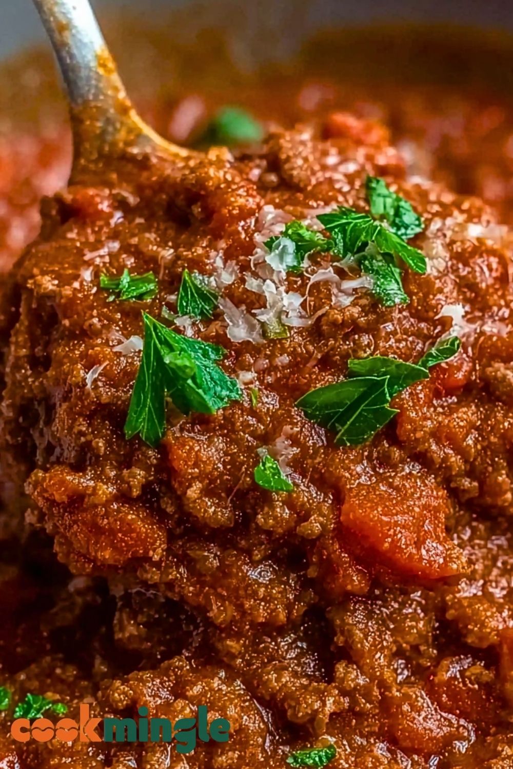 Reduce the heat to low and let the sauce simmer gently, uncovered, for at least 1.5 to 2 hours—the longer, the better. Stir occasionally to prevent sticking, and adjust seasoning as needed. This is where the magic happens: the flavors deepen, the meat tenderizes, and the sauce thickens beautifully.
