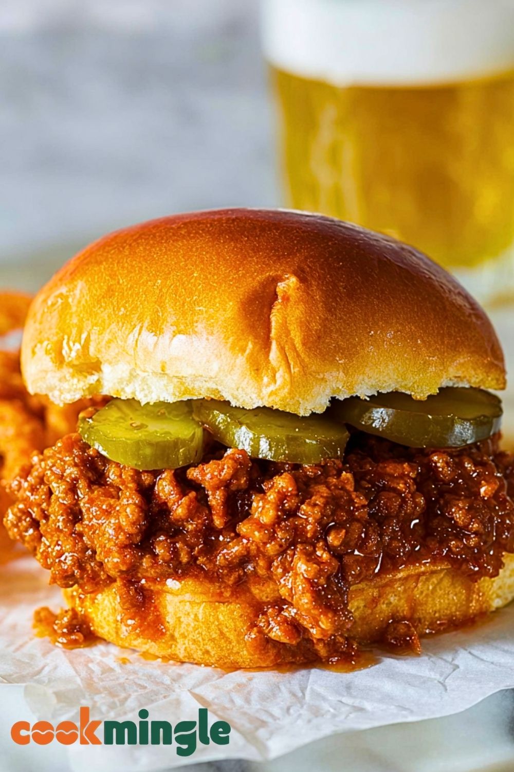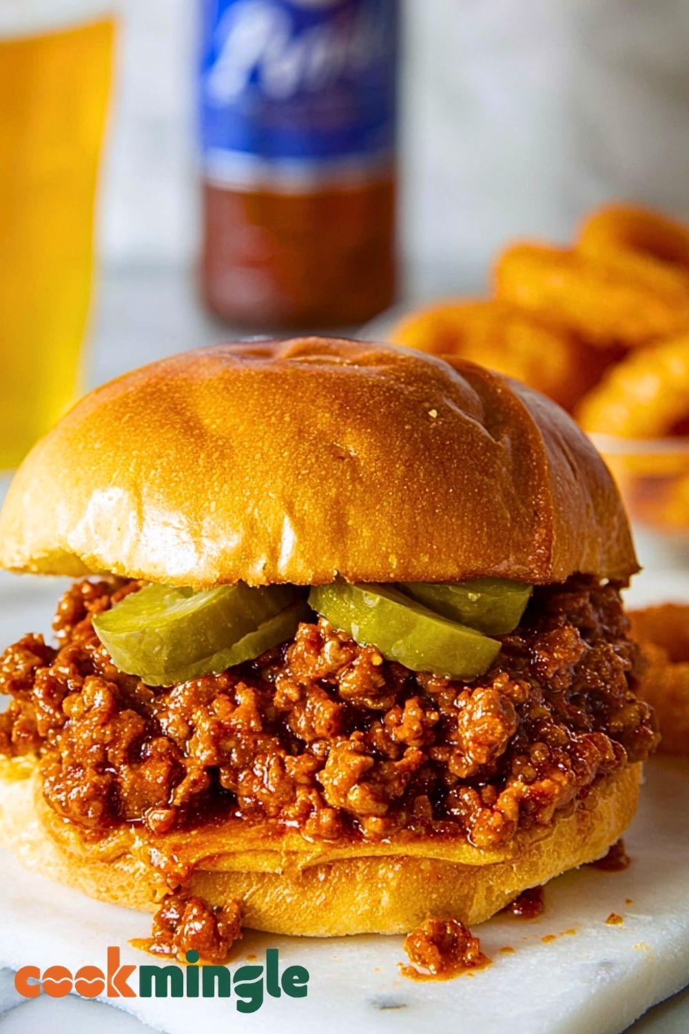 Few comfort foods hit quite like a perfectly messy Sloppy Joe. This homemade version brings rich, savory ground beef together with a tangy-sweet tomato-based sauce that clings to every bite. Nestled inside a soft, lightly toasted bun and topped with crisp pickles, it delivers that nostalgic flavor—but with a deeper, from-scratch upgrade.
