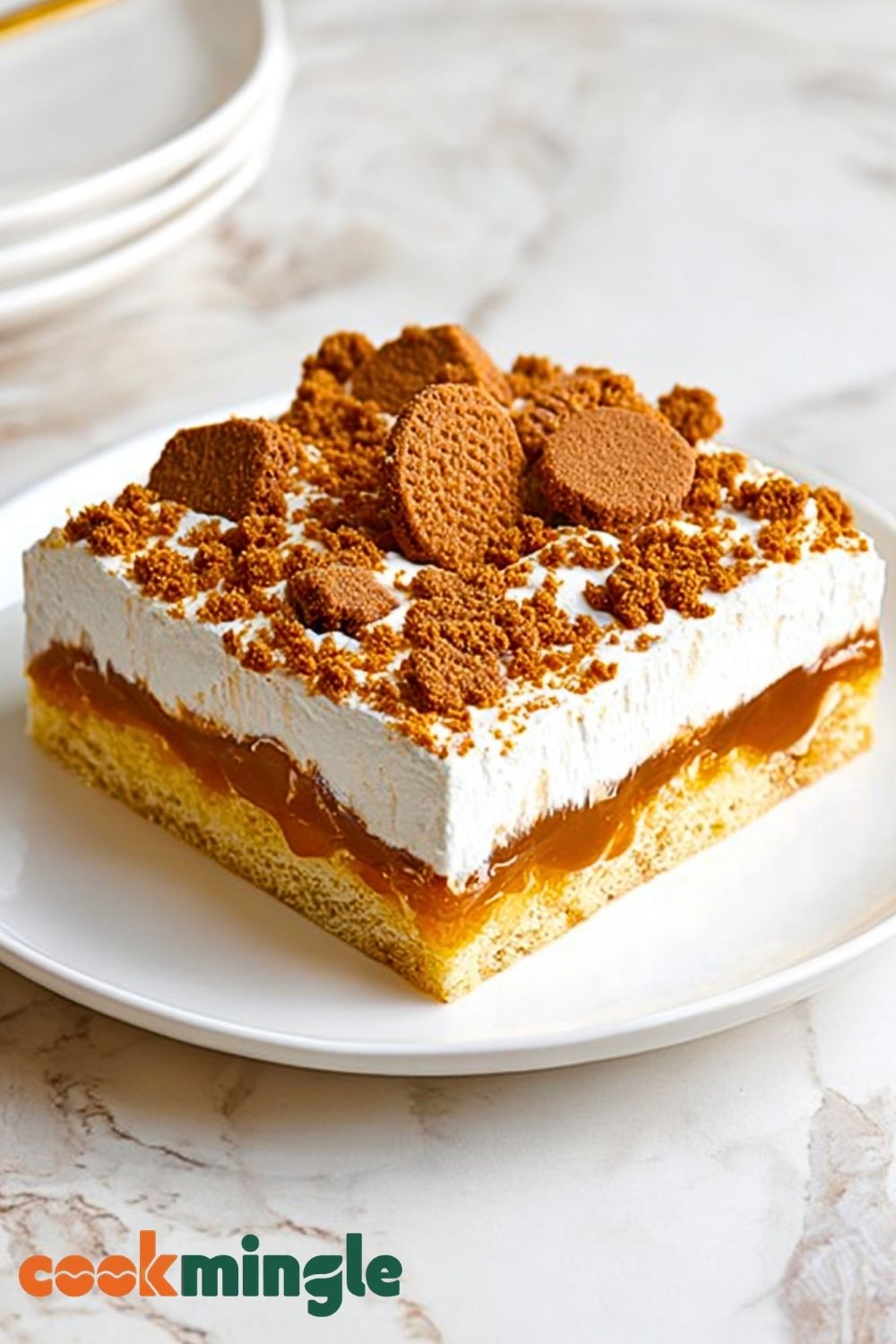 The real transformation happens during the chilling stage. Allowing the cake to rest in the refrigerator for at least 2 hours (or ideally overnight) gives the Biscoff mixture time to fully soak in and set. This step deepens the flavor and improves the texture, making each slice cleaner and more indulgent.