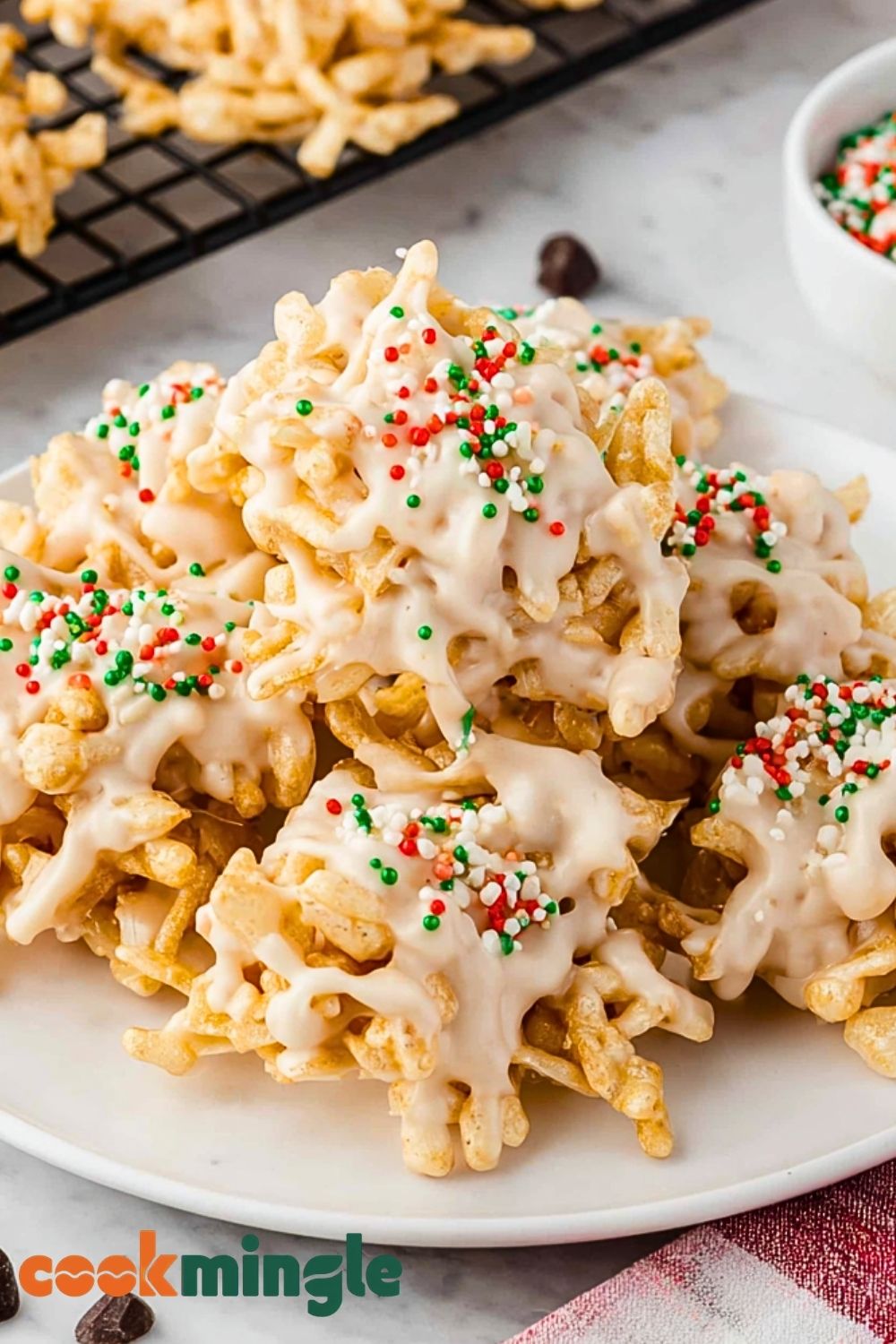I love how versatile and festive they are. You can easily swap out sprinkles to match any holiday or occasion. Plus, there’s something nostalgic about the crunchy chow mein noodles coated in smooth white chocolate. Whether you need a quick last-minute dessert or something fun to make with the kids, these little clusters are always a hit.