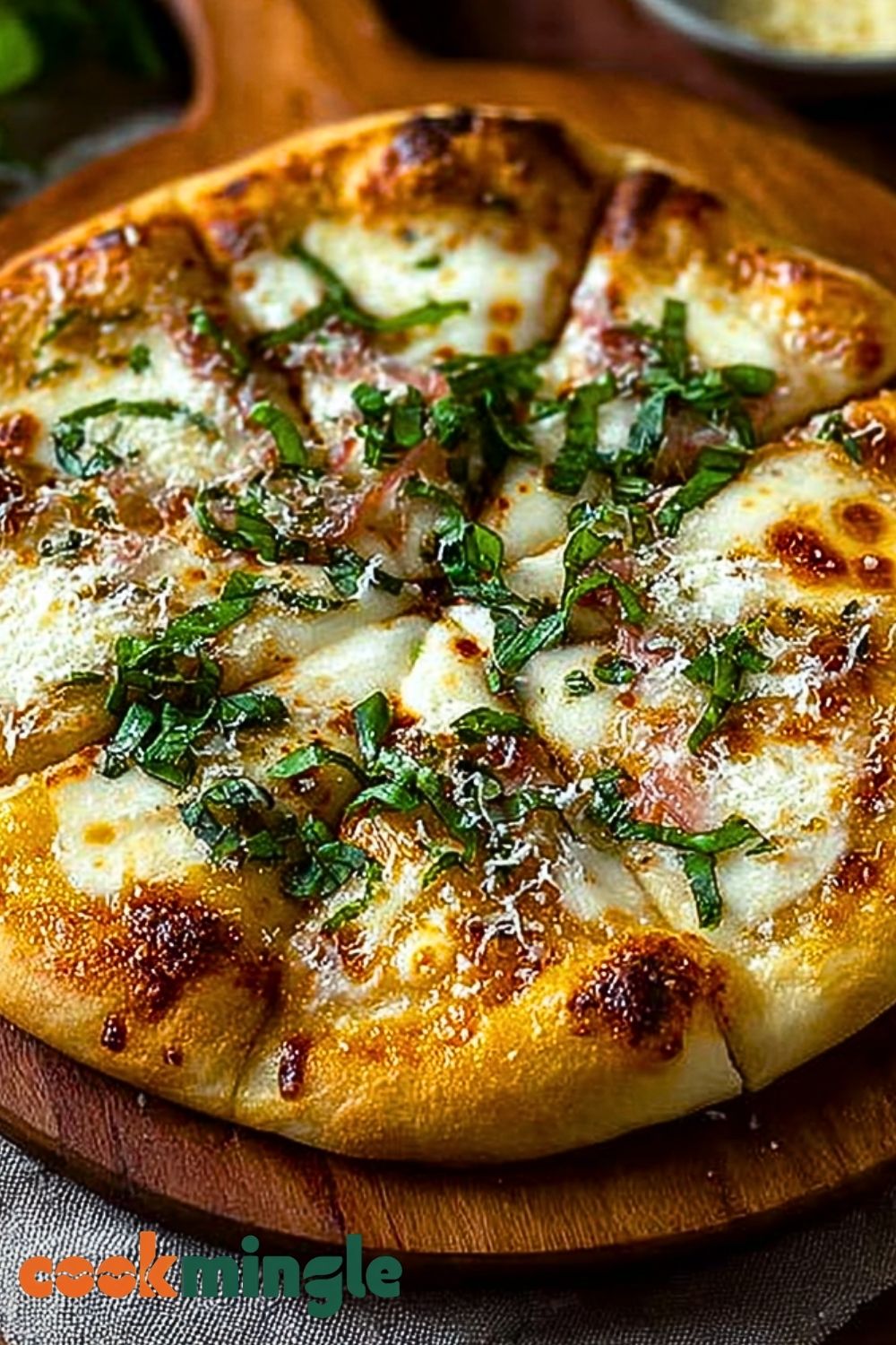 Whenever I’m craving something indulgent yet unexpectedly elegant, I go straight for this White Pizza. It’s a creamy, cheesy, garlic-infused flatbread that hits all the right notes—without a drop of tomato sauce. I love how the simplicity of mozzarella, ricotta, and Parmesan lets each ingredient shine. The golden, blistered crust paired with the melty richness of cheese and a scattering of fresh herbs is pure comfort in every bite.